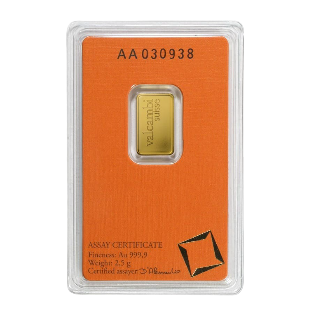 2.5 g Gold Bar – Valcambi Suisse (in Assay)