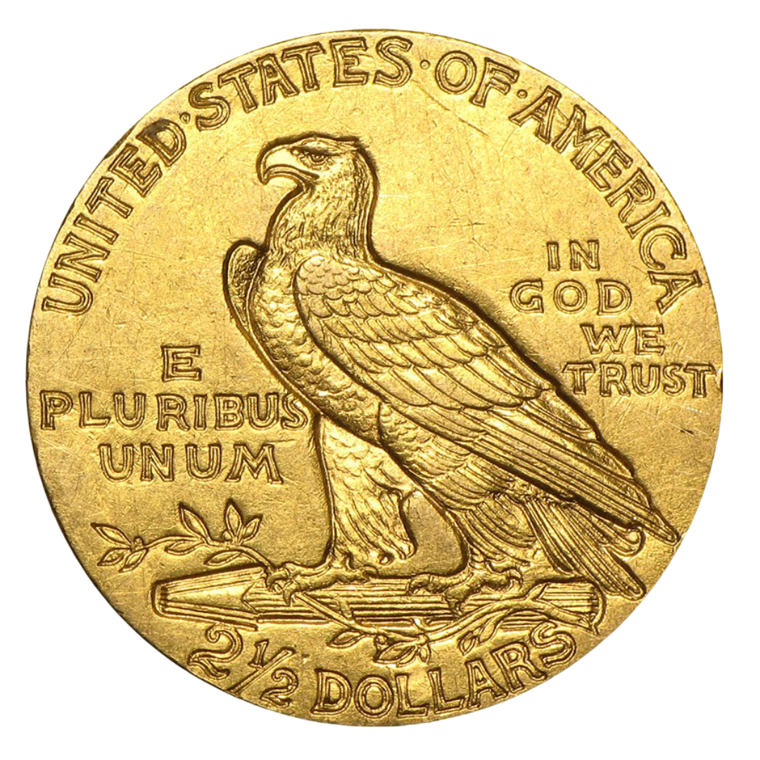 The $2.50 Indian Gold Quarter Eagle is one of the most innovative and admired U.S. gold coins ever struck. Designed by Bela Lyon Pratt, it was issued from 1908 to 1929 and features a revolutionary incuse (sunken relief) design — the first of its kind in U.S. coinage. This technique caused the design to be recessed below the coin’s surface rather than raised above it, giving it a unique, sculpted appearance that collectors cherish to this day.