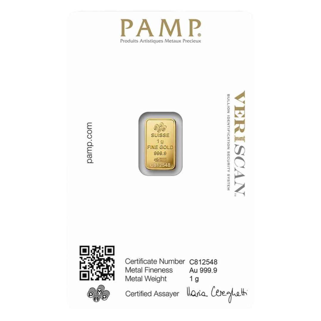 PAMP 1 gram Lady Fortuna Gold Bar (in CertiPAMP™ Assay, VERISCAN™)