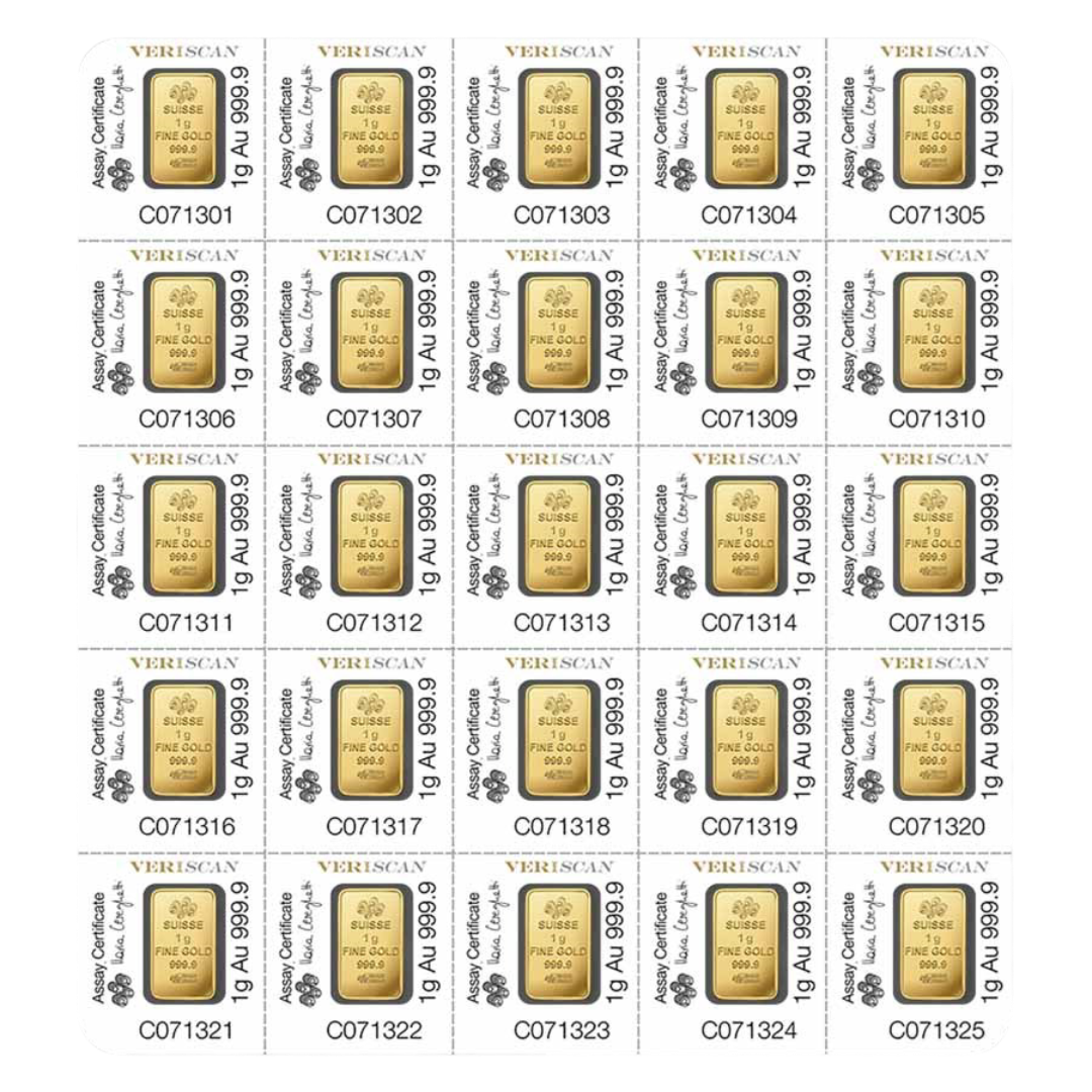 Secure the PAMP Suisse 25×1 g Gold Multigram+25 today—Swiss-made innovation combining elegant design, flexibility, and investment-grade purity.