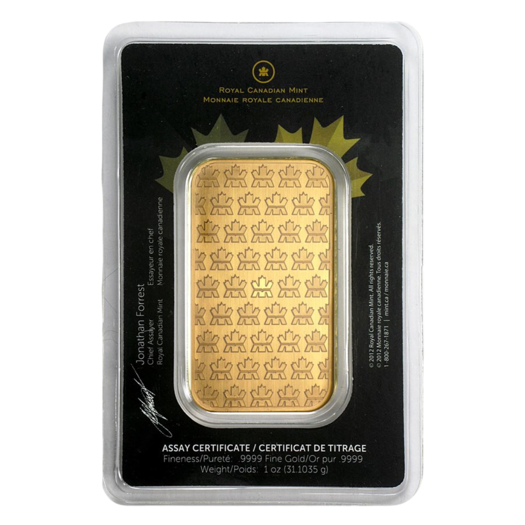 Add the iconic Royal Canadian Mint 1 oz Gold Bar (in Assay Card) to your collection today—world-renowned quality, classic design, and lasting value.