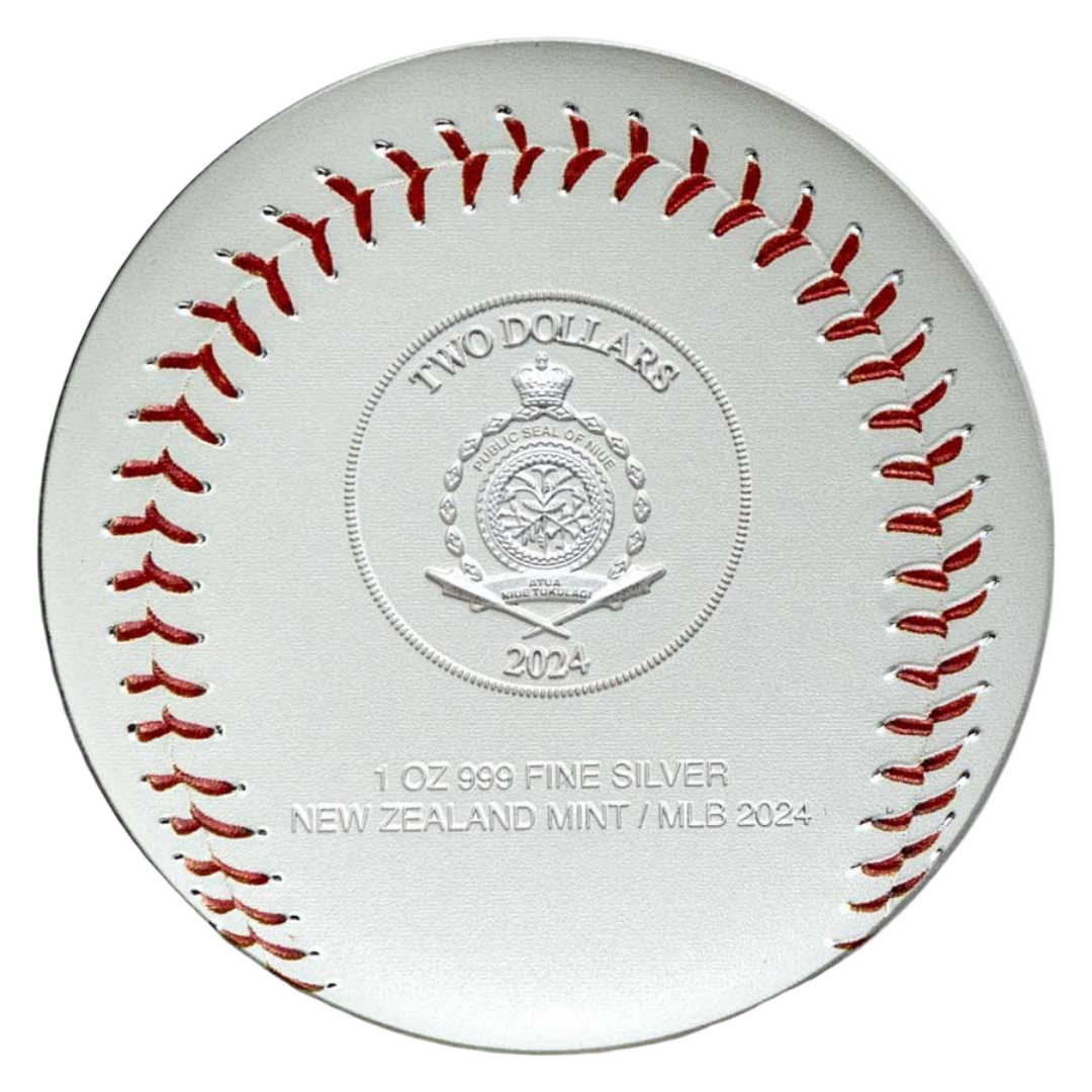 2024 Niue 1 oz Silver $2 – MLB Logo on Baseball (Colorized/Curved)